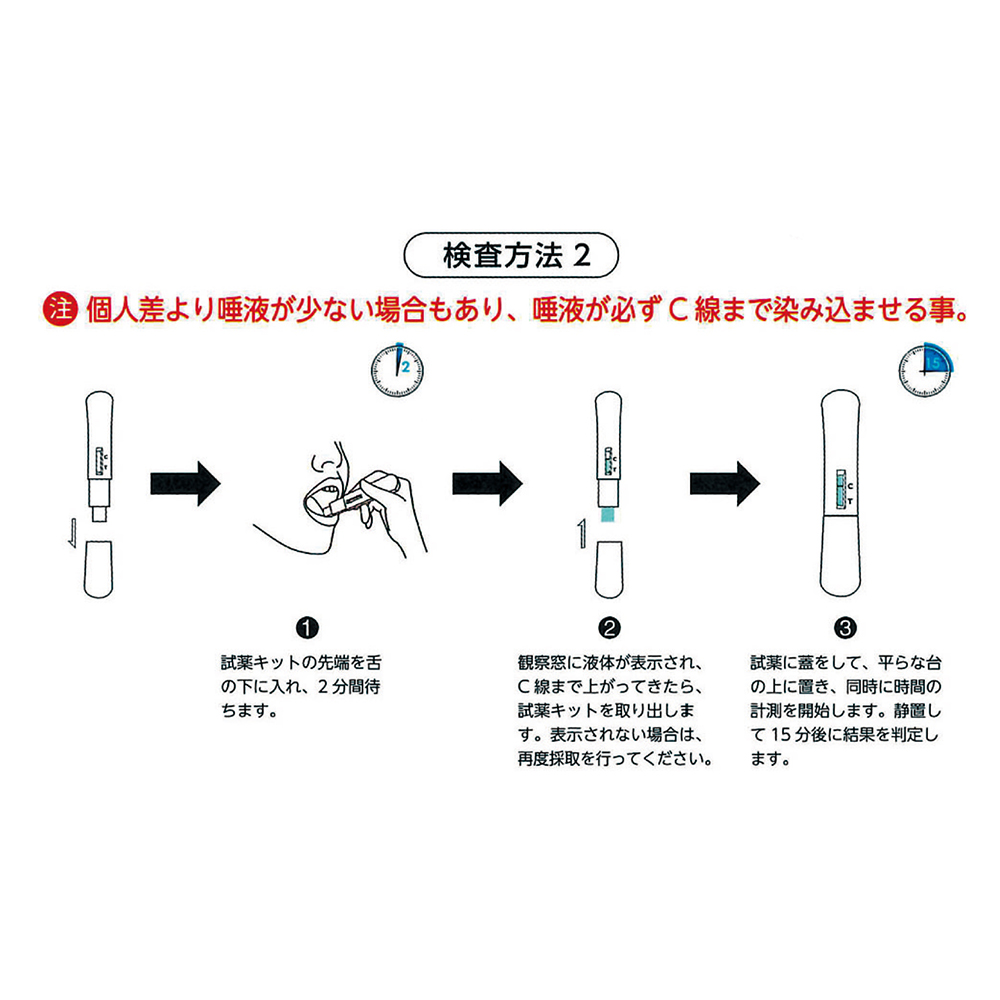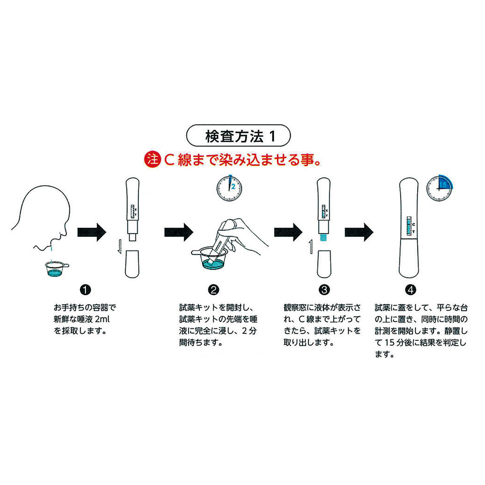 - 本検査キットは体内のウィルス量、検出対象物の量、検査汚れタイミングによって検出ができない可能性があります。