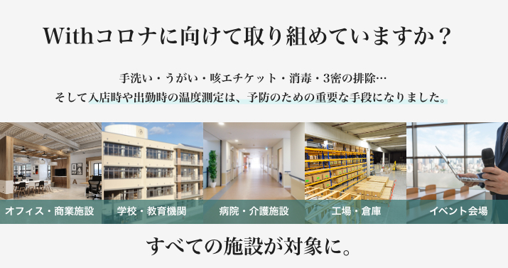 ガンタイプ体温計のように人を介した測定が不要になり、リスク回避でが可能です。