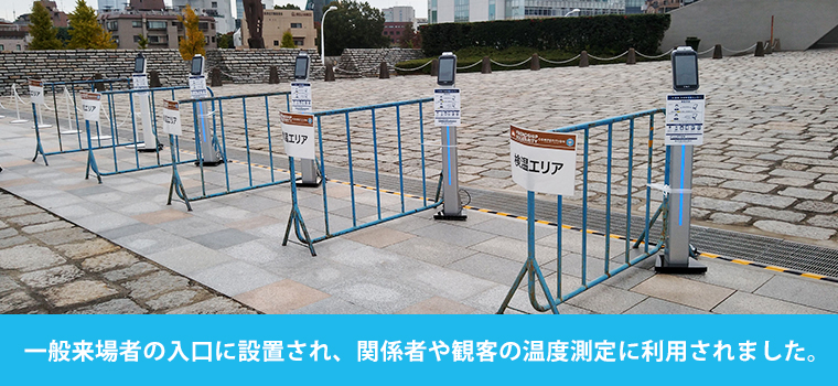 本大会では一般来場者の入口に設置され、関係者や観客の温度測定に利用されました。
