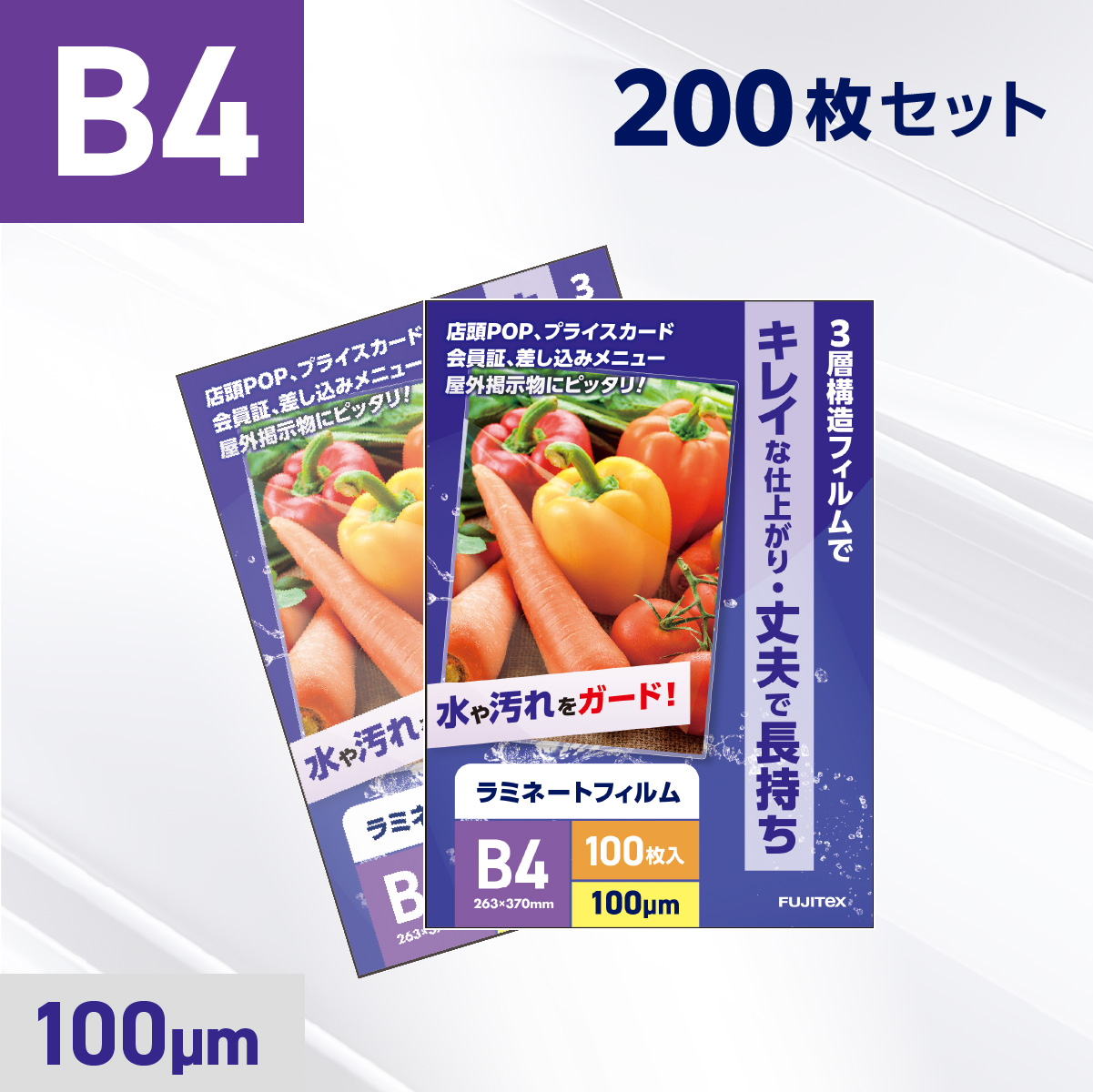 b4サイズラミネートフィルム(263×370mm)一覧です。各種厚み、素材のラミネートフィルムを取り揃えています。