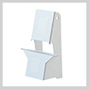 - カレンダーやカタログ(中手)の用紙を二つ折りにし、折り目側から機械に挿入する。