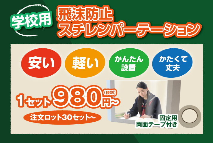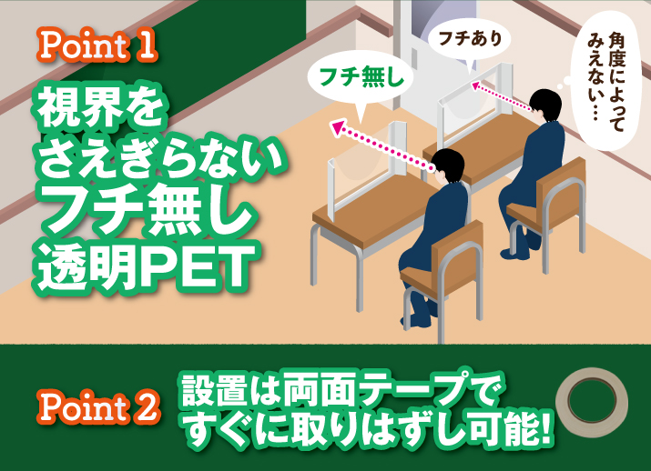 上辺に枠がないので授業中も視界を確保できます。汚れに強く丈夫です。