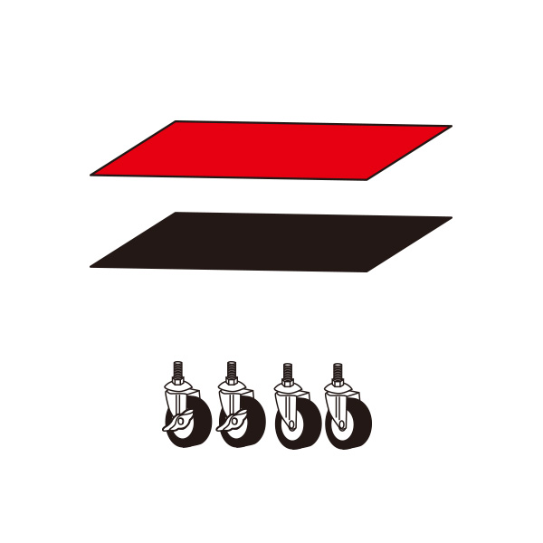 | セット内容 | スタンド×1台、キャスター×4個(ストッパー付・無し×各2個)、 アジャスター×4個、天板シート×2枚(赤・黒×各1枚) |