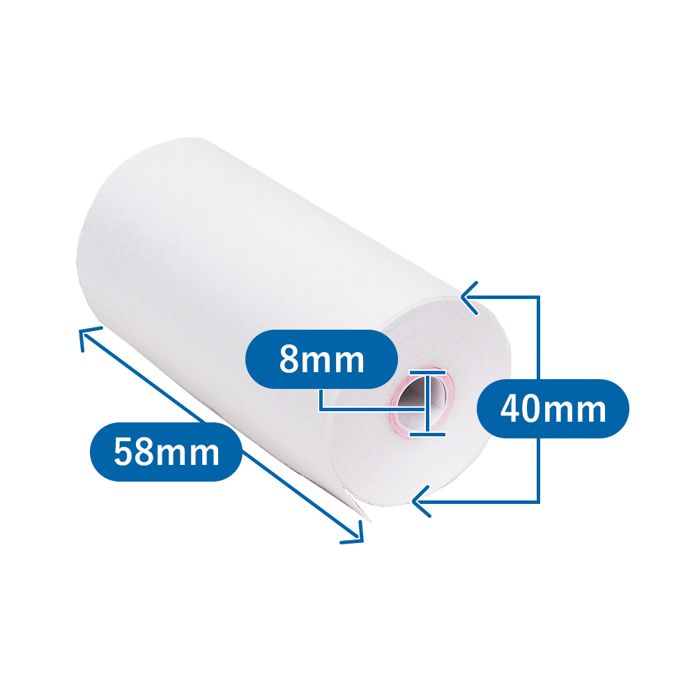 【販売終了】感熱レジロール紙(ノーマル保存)幅58×外径40×芯径8mm コアレスタイプ 100巻入