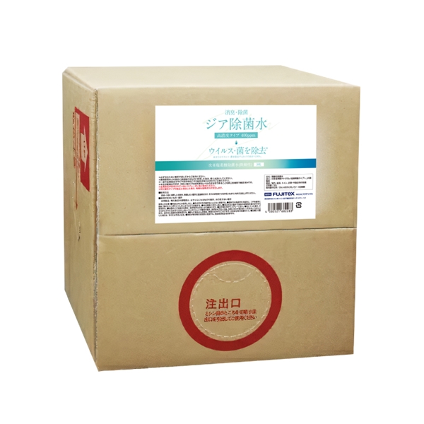品名 弱酸性除菌水 成分 次亜塩素酸ナトリウム<低臭素酸タイプ>、pH調整剤 用途 室内、厨房、トイレ、衣類・布製品等の除菌 正味量 20L 使用量の目安 20cm四方に対して2~4回噴霧 使用できないもの・箇所 皮革製品、電化製品の通電部分、水でシミになるものや箇所、水の使えない場所 使用方法 原液~5倍に希釈した本剤を、除菌したい箇所に直接噴きかけ、そのまま乾燥させるか乾いたきれいな布で拭き上げてください。 詰め替えて使用する場合の注意点 ※金属部品が使用されていないスプレーガンをご使用ください。