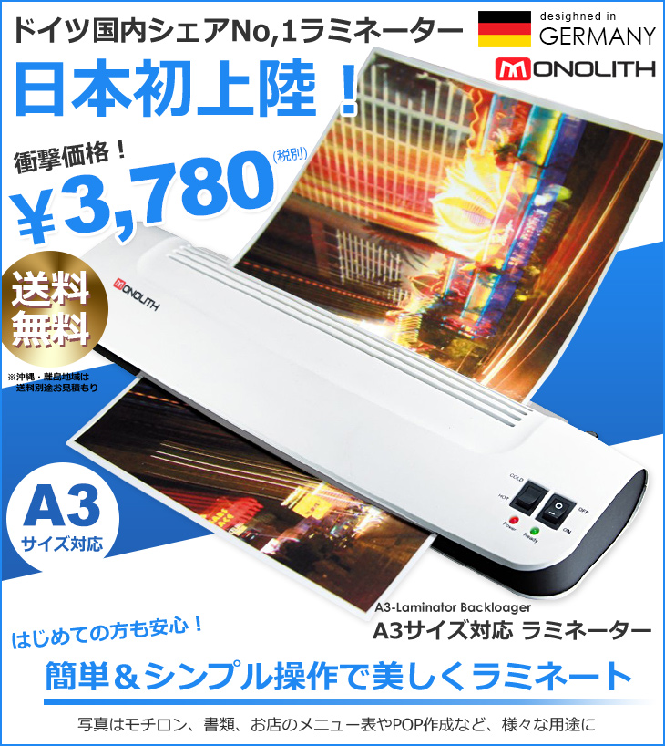- ご家庭やオフィスで手軽に使える、2本ローラーラミネーターです。